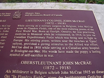 Another of the helpful plaques placed outside the dugout at Essex Farm cemetery by the Canadian Authorities giving the words of the famous poem In Flanders Fields