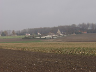 This photograph was taken from the edge of Sanctuary Wood and depicts the extensive British cemetery -Hooge Crater-on the Menin Road.
